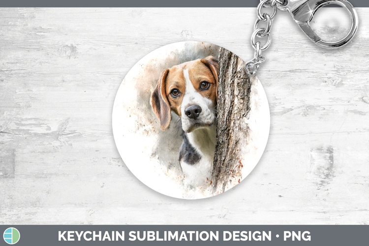 Beagle Dogs 01 Tree Peek Keychain Sublimation Design