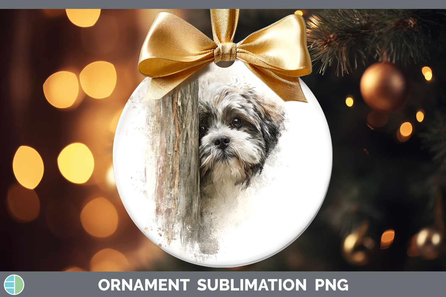 Lhasa Apso Dogs 01 Tree Peek Ornament Sublimation Design