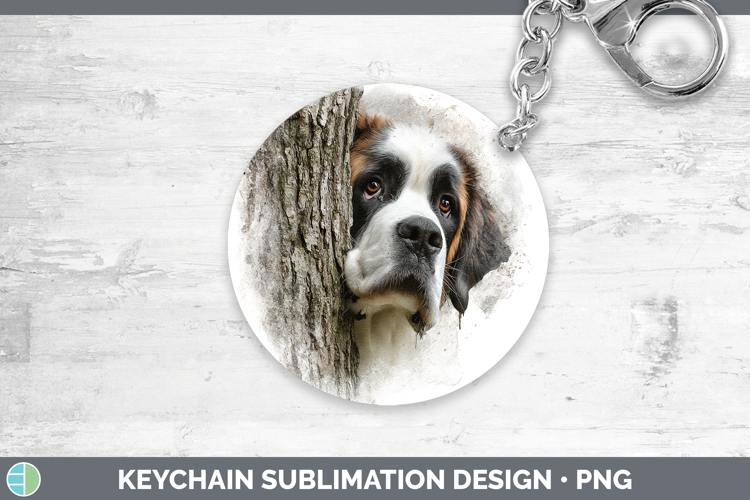 Saint Bernard Dogs 01 Tree Peek Keychain Sublimation Design