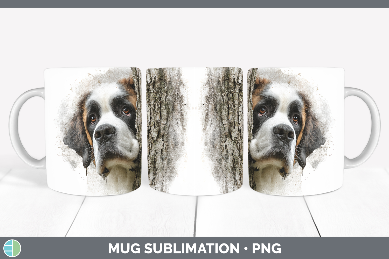Saint Bernard Dogs 01 Tree Peek Mug Wrap Sublimation Design