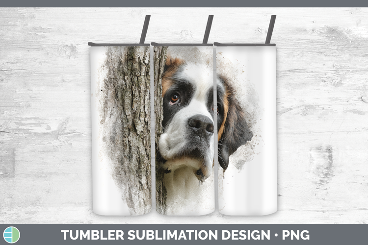 Saint Bernard Dogs 01 Tree Peek Tumbler Sublimation Design