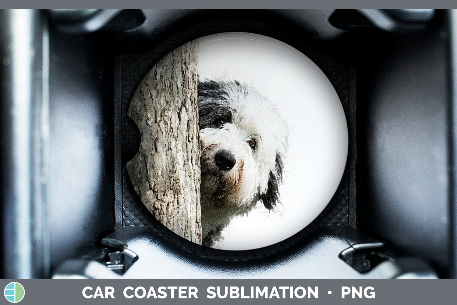 Similar Design Products to Old English Sheepdog Dogs 01 Tree Peek Car Coaster Sublimati