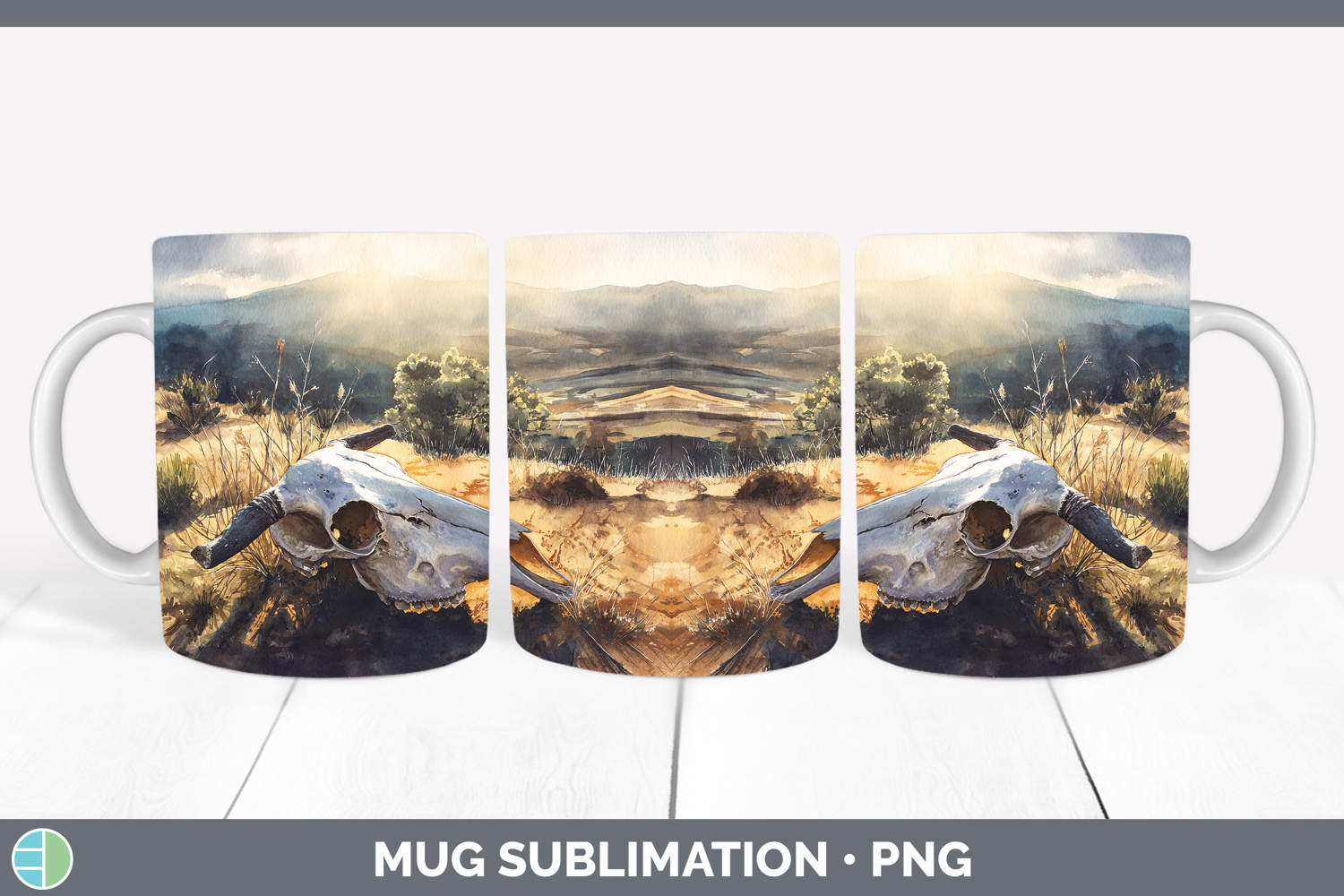 Cow Skull Best Sellers 01 Sunset Mug Wrap Sublimation Design
