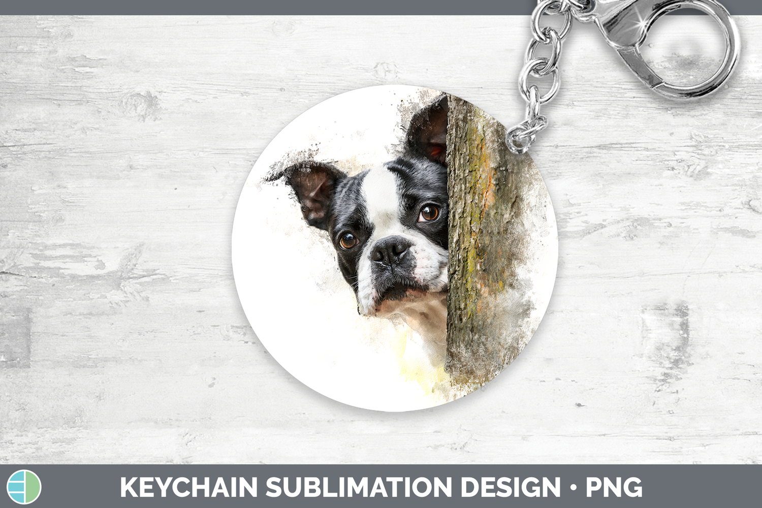Boston Terrier Dogs 02 Tree Peek Keychain Sublimation Design