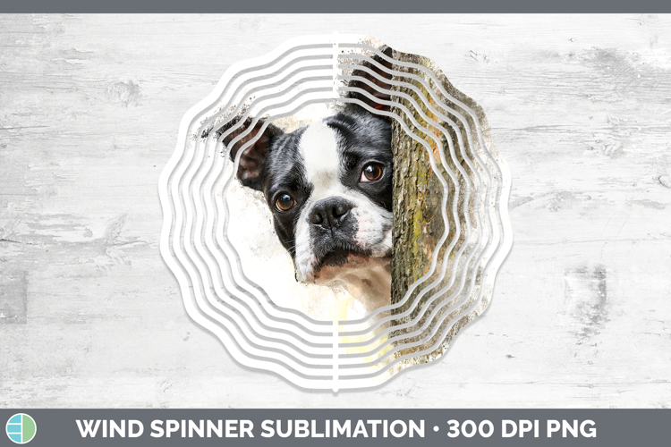 Boston Terrier Dogs 02 Tree Peek Wind Spinner Sublimation De