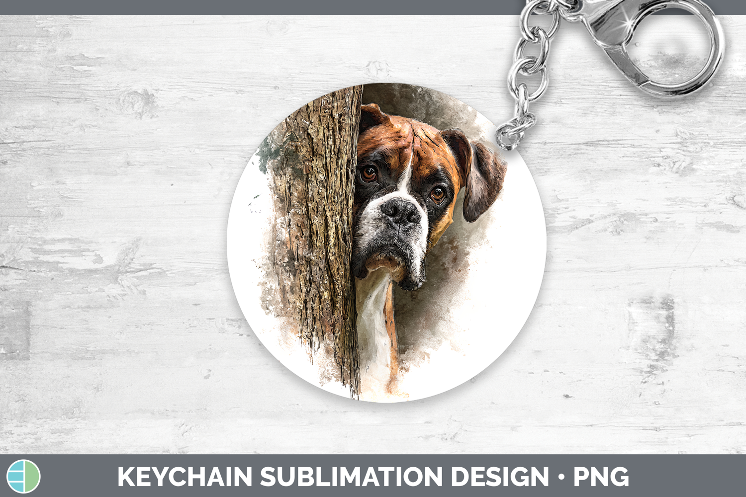Boxer Dogs 02 Tree Peek Keychain Sublimation Design