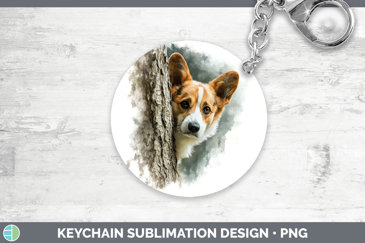 Pembrook Corgi Dogs 02 Tree Peek Keychain Sublimation Design
