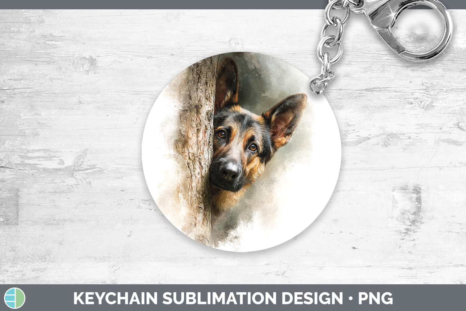 German Shepherd Dogs 02 Tree Peek Keychain Sublimation Desig