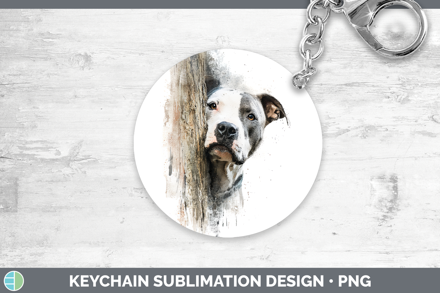 Pit Bull Dogs 02 Tree Peek Keychain Sublimation Design