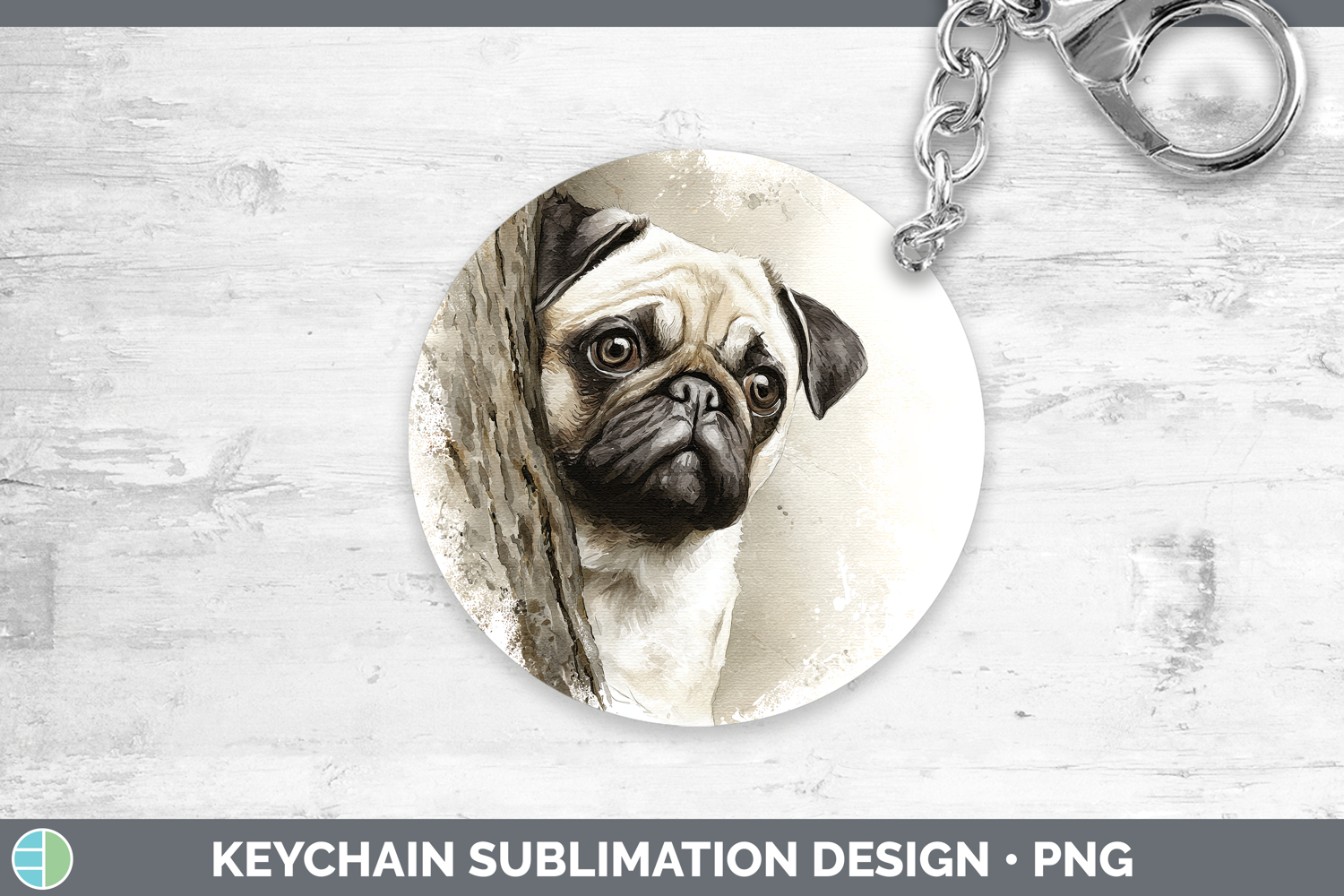 Pug Dogs 02 Tree Peek Keychain Sublimation Design