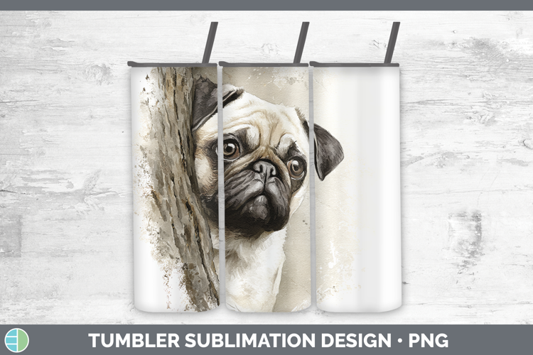 Pug Dogs 02 Tree Peek Tumbler Sublimation Design