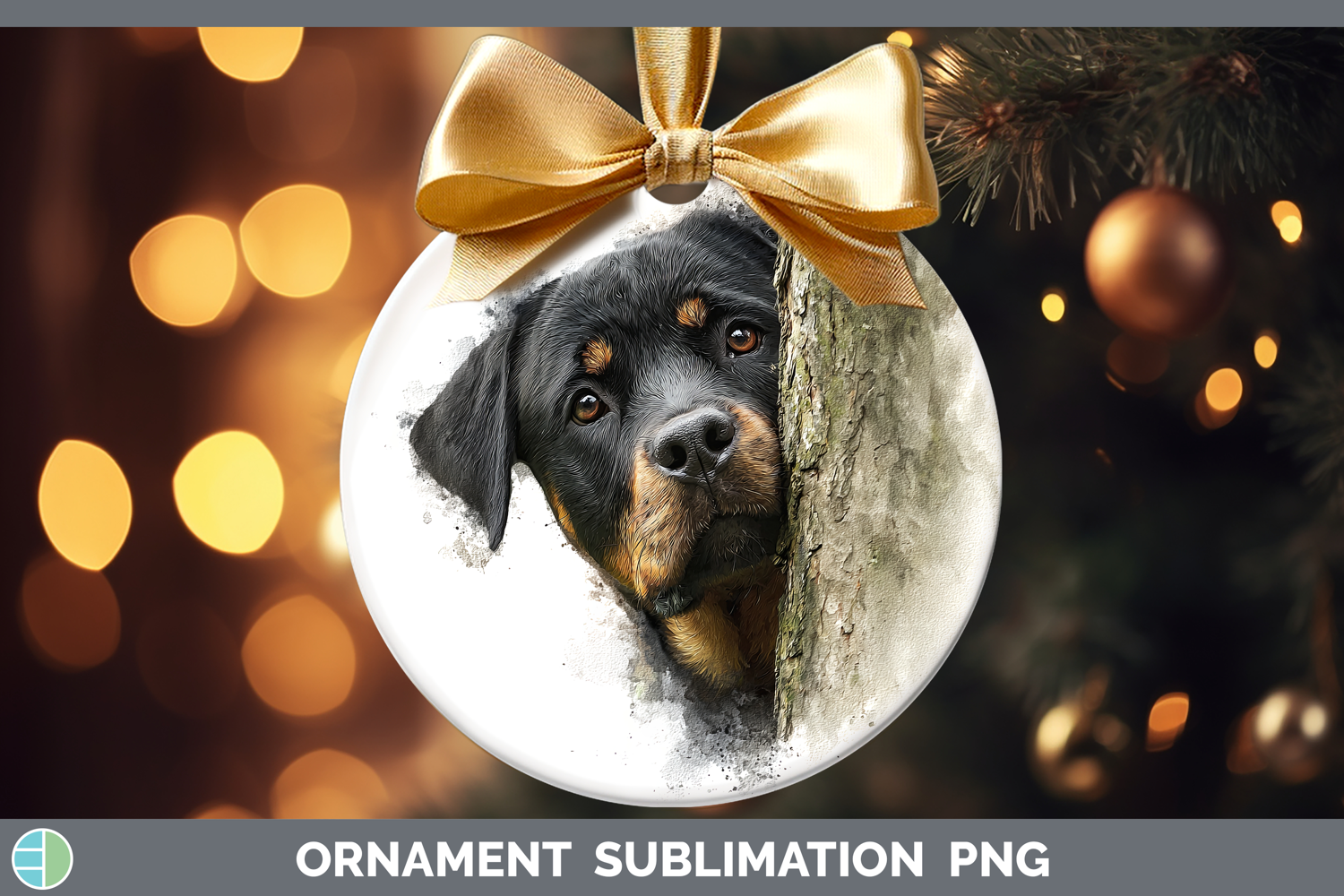 Rottweiler Dogs 02 Tree Peek Ornament Sublimation Design
