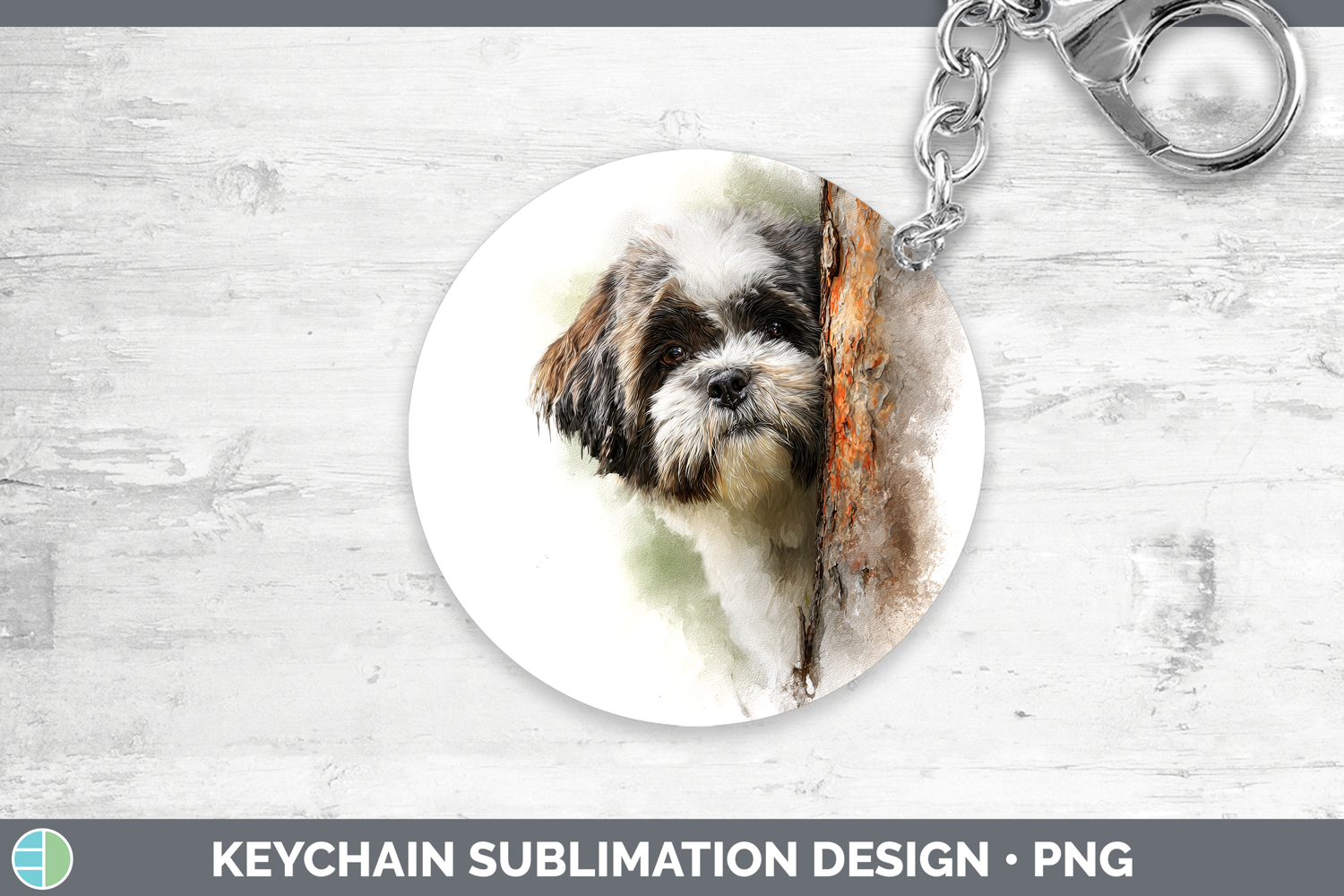 Shih Tzu Dogs 02 Tree Peek Keychain Sublimation Design