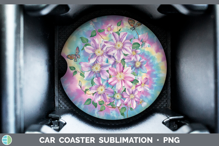 Clematis Flowers 03 Tie Dye Car Coaster Sublimation Design