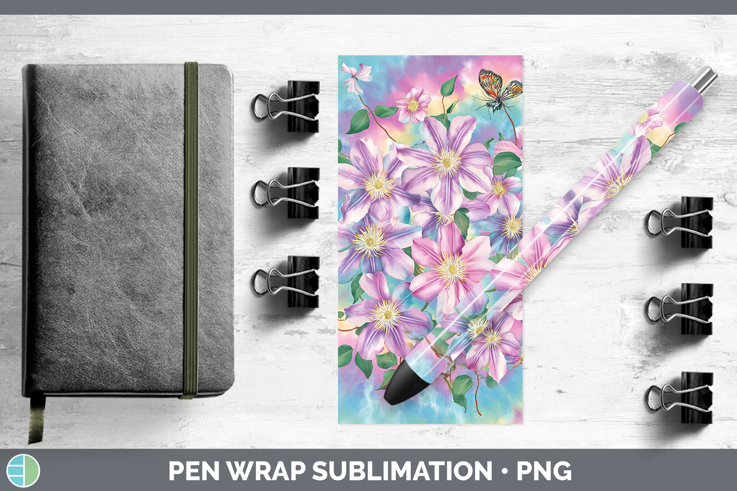 Clematis Flowers 03 Tie Dye Pen Wrap Sublimation Design