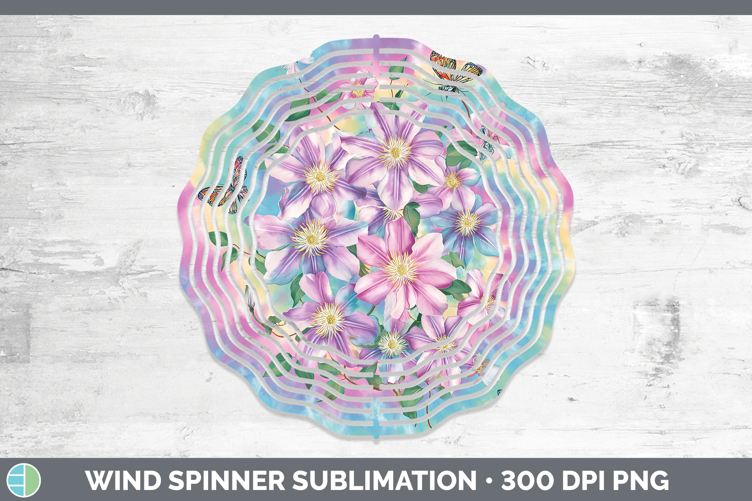 Clematis Flowers 03 Tie Dye Wind Spinner Sublimation Design
