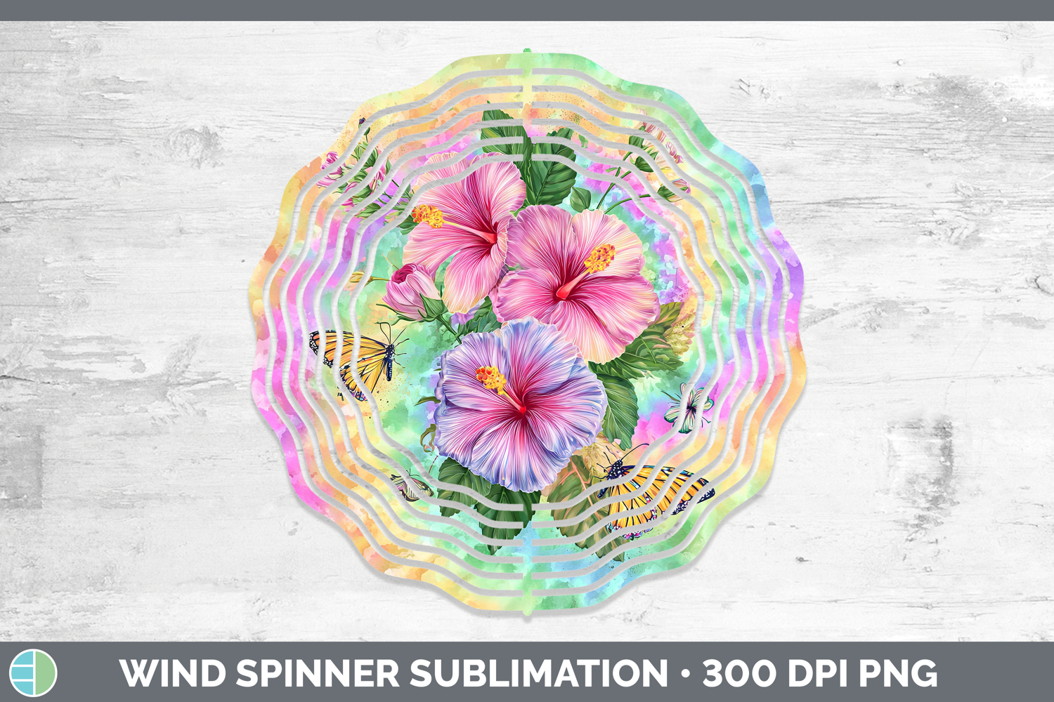 Hibiscus Flowers 03 Tie Dye Wind Spinner Sublimation Design