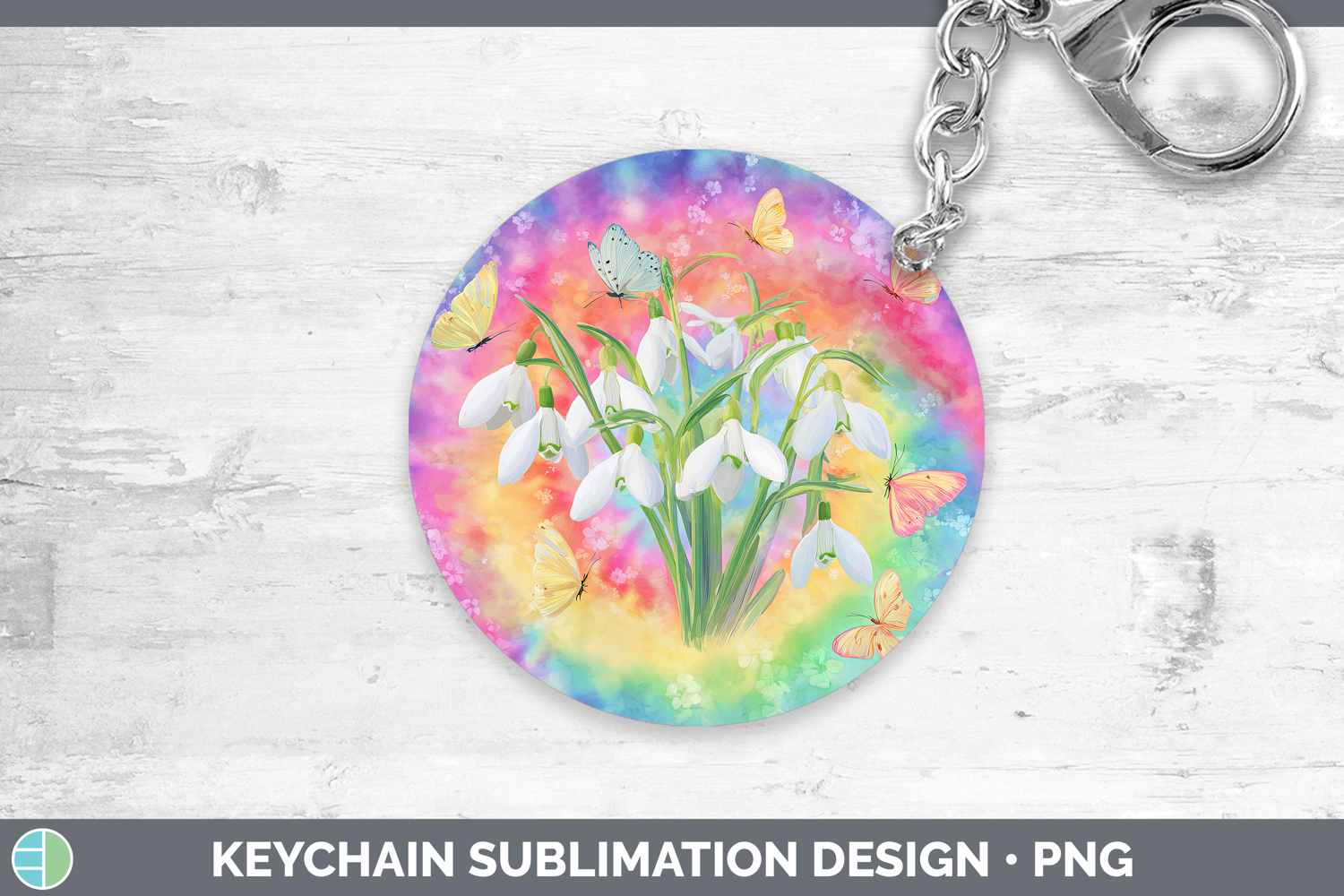 Snowdrop Flowers 03 Tie Dye Keychain Sublimation Design