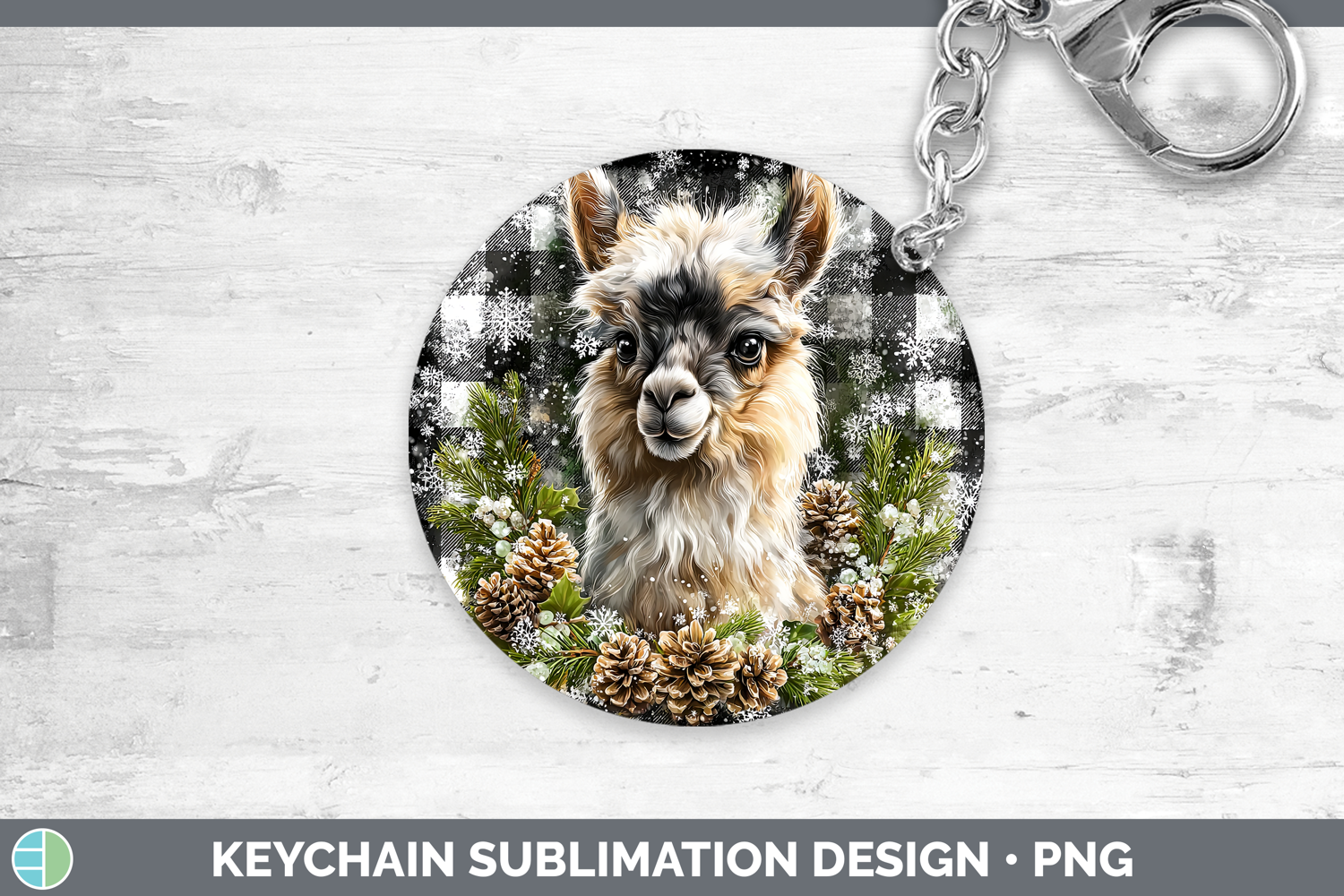 LLama Farm Checker Christmas Keychain Sublimation Design