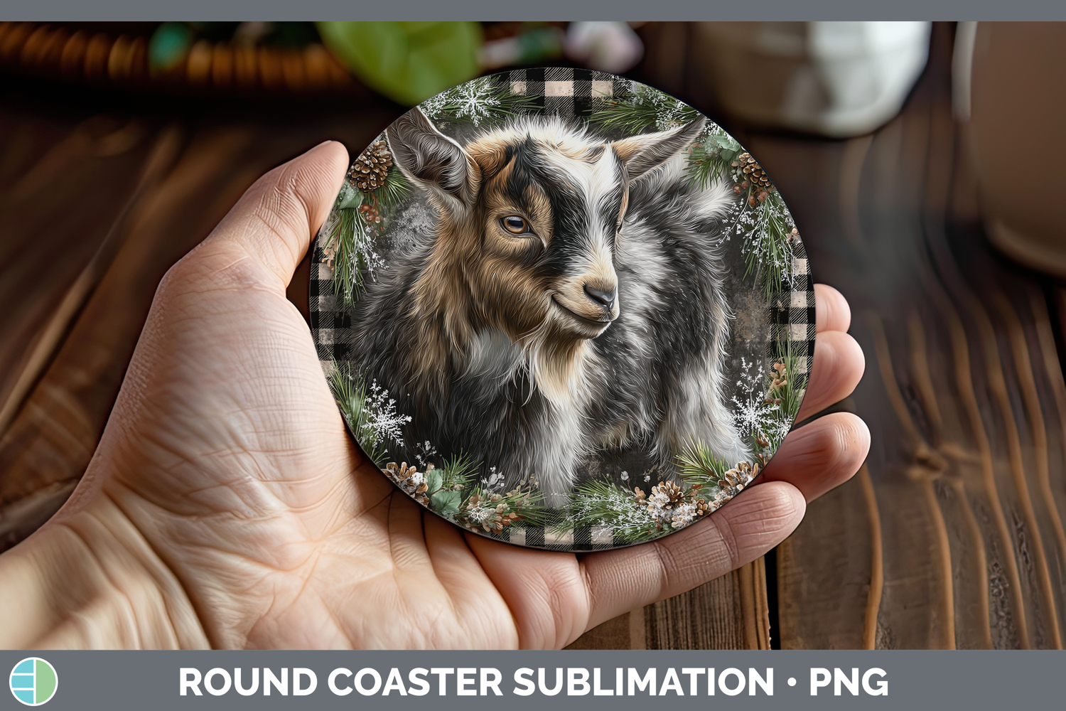 Goat Farm Checker Christmas Round Coaster Sublimation Design
