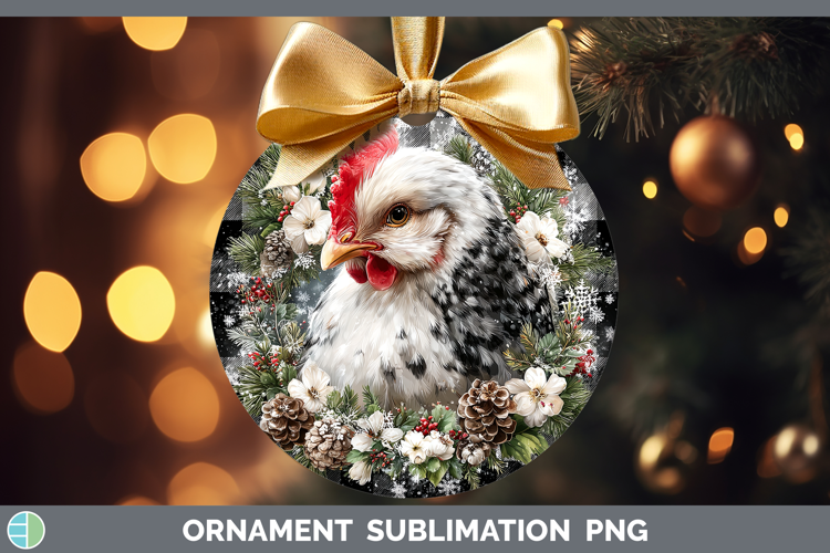 Chicken Farm Checker Christmas Ornament Sublimation Design