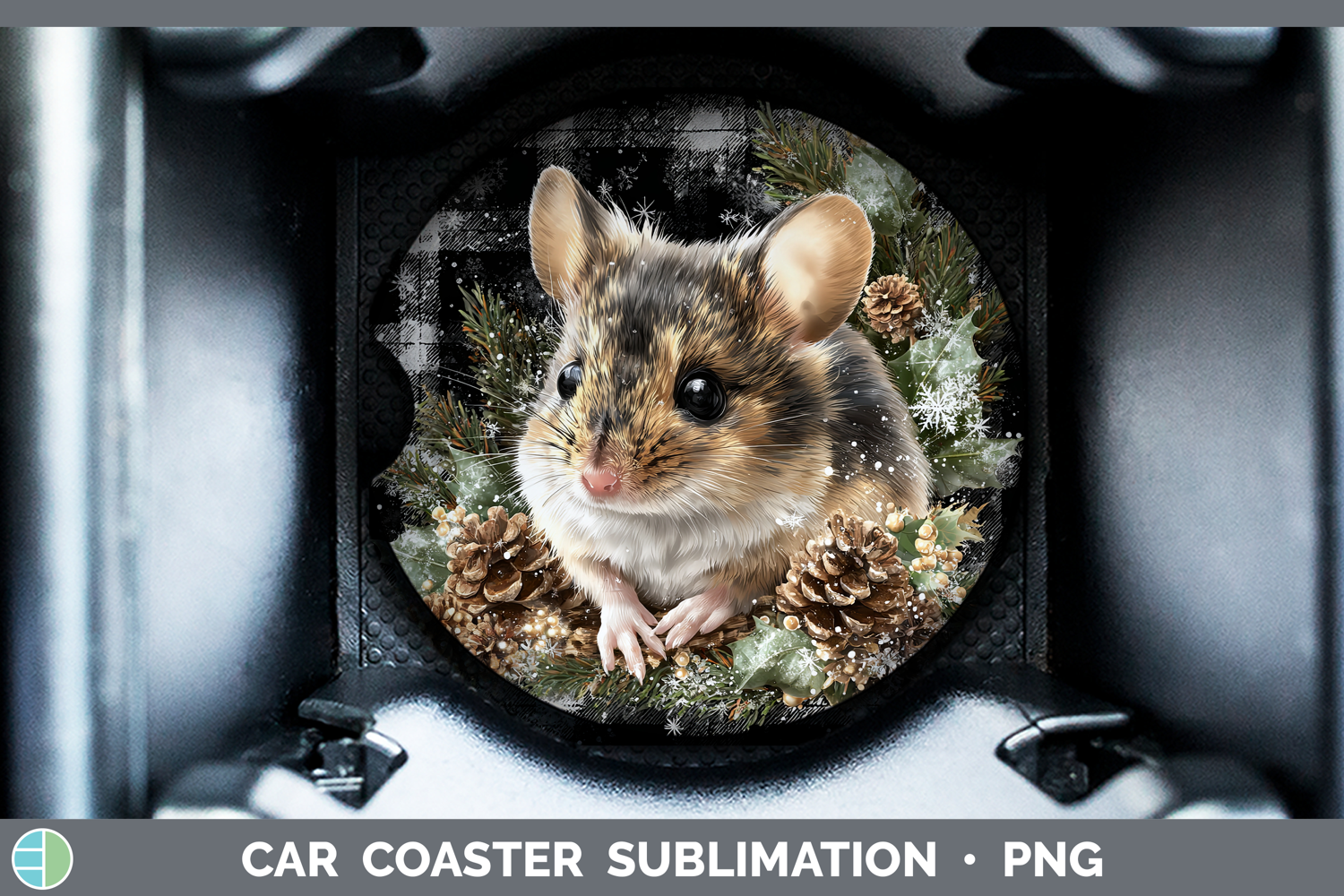 Mouse Farm Checker Christmas Car Coaster Sublimation Design