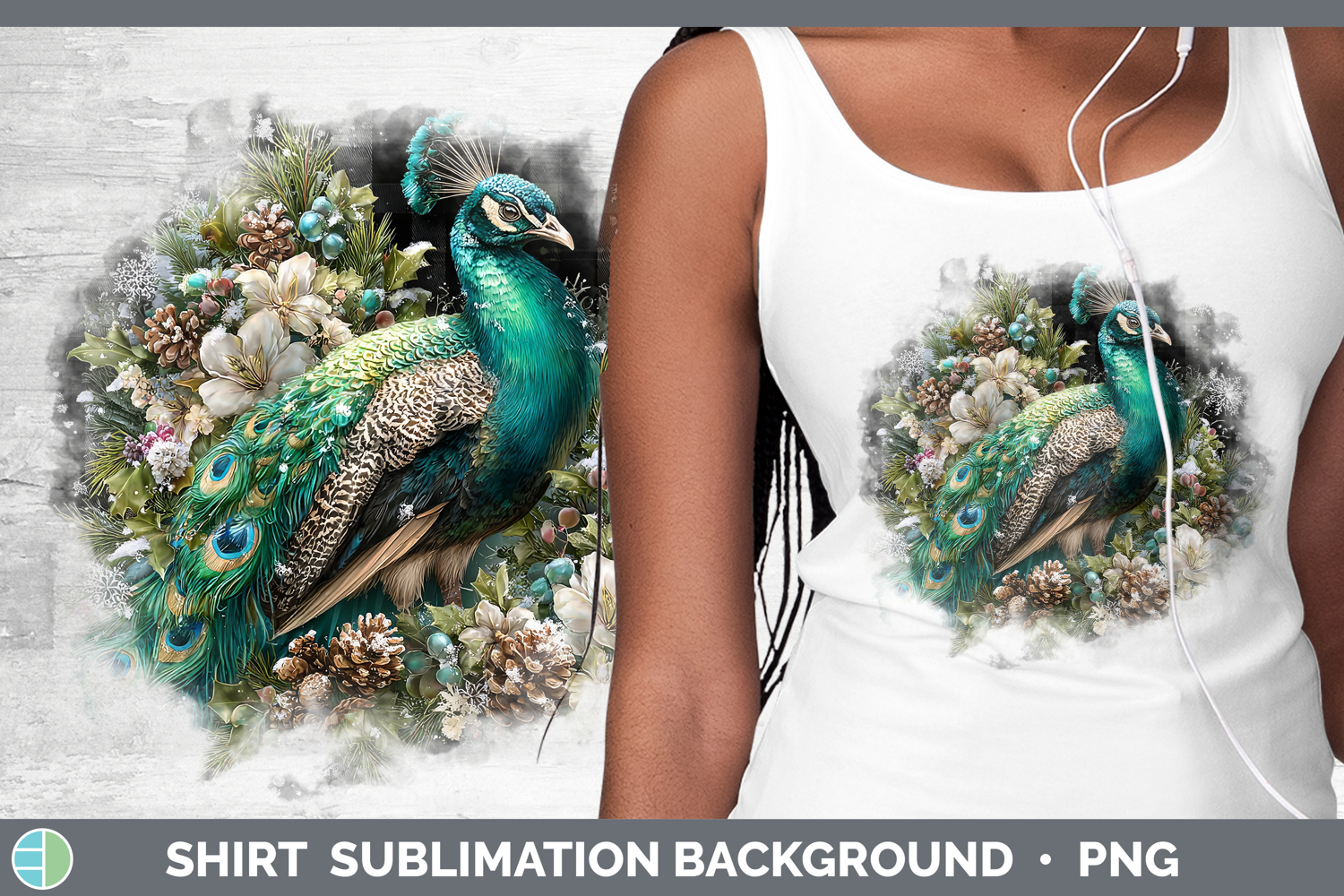 Peacock Farm Checker Christmas Shirt Sublimation Design