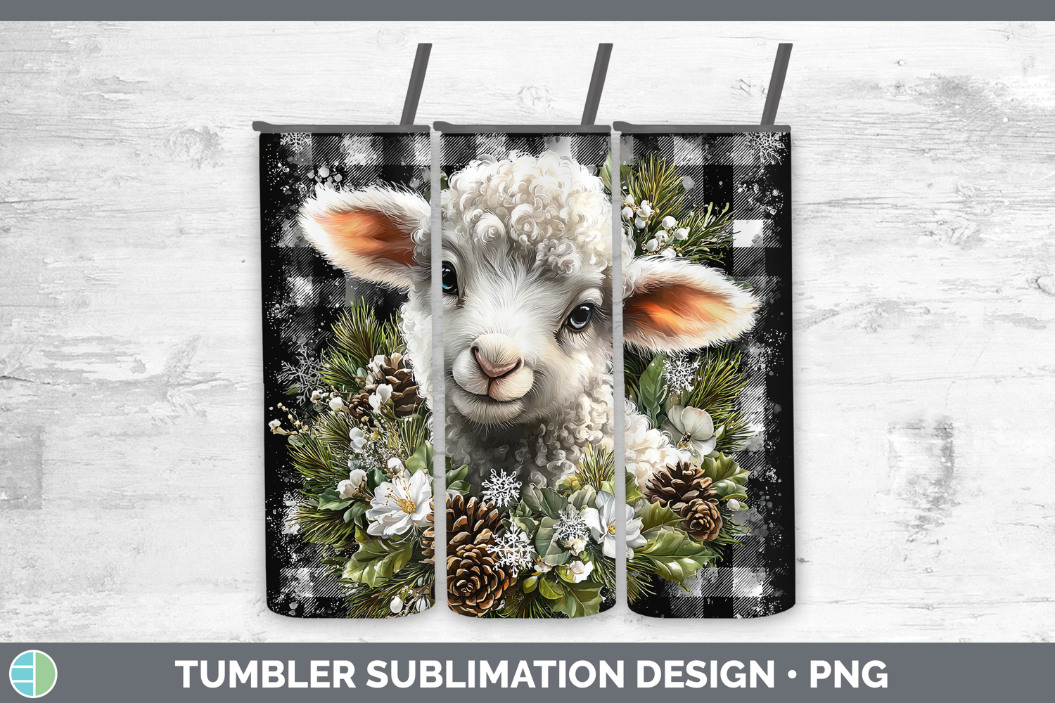 Sheep Farm Checker Christmas Tumbler Sublimation Design