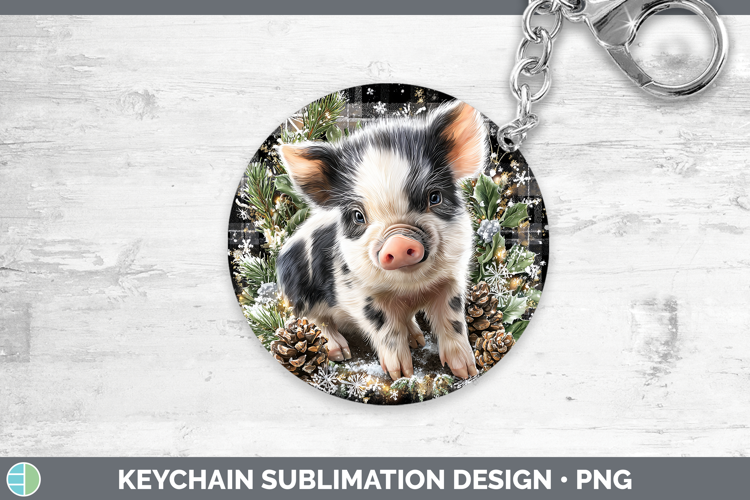 Pig Farm Checker Christmas Keychain Sublimation Design