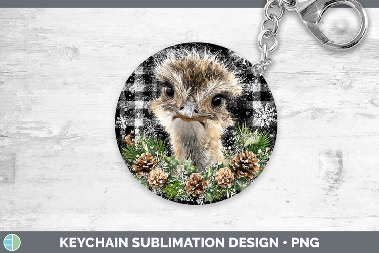 Ostrich Farm Checker Christmas Keychain Sublimation Design