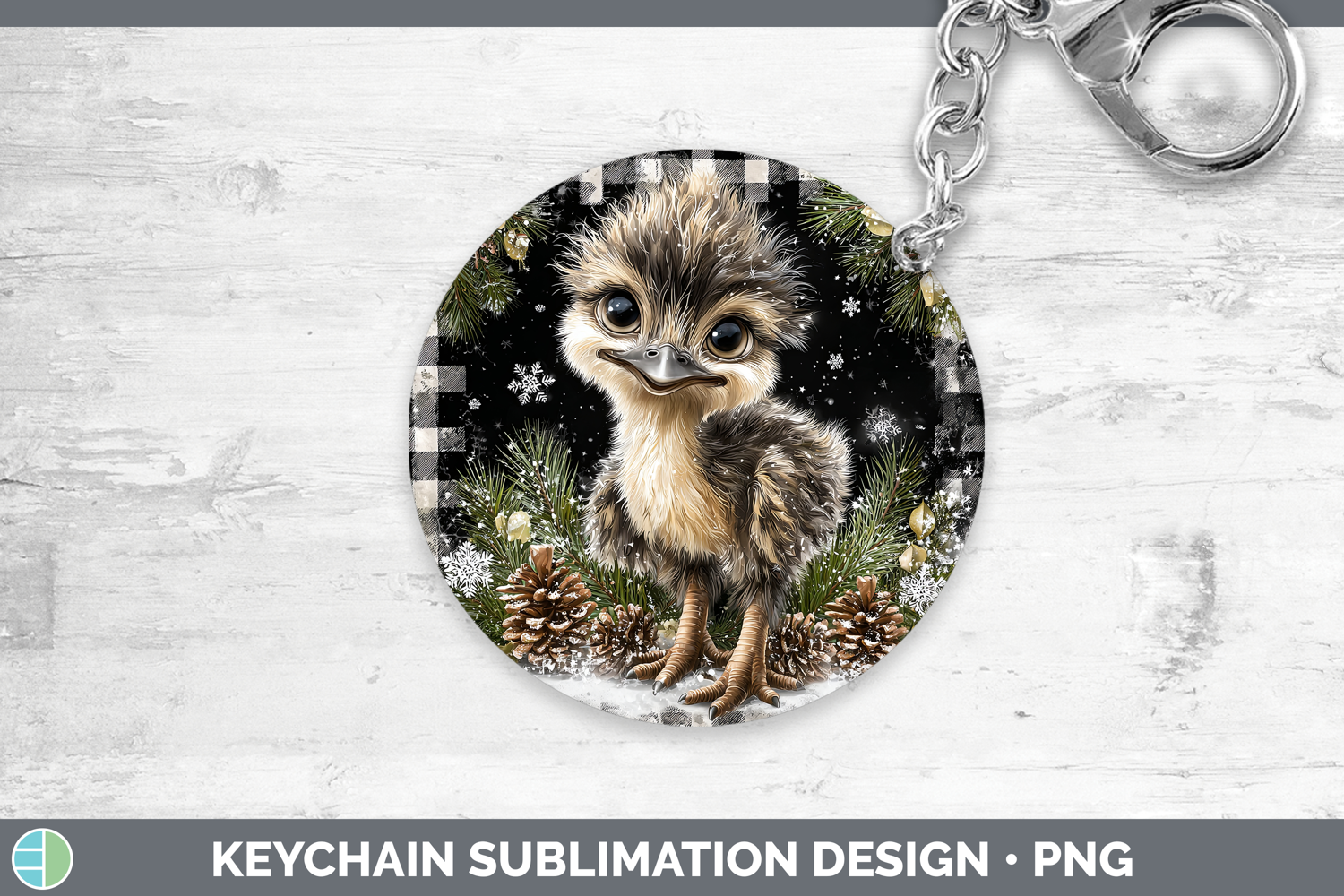 Emu Farm Checker Christmas Keychain Sublimation Design