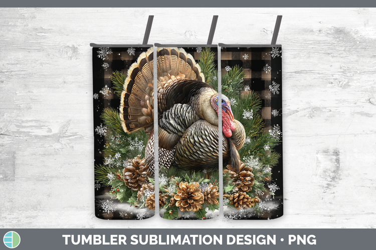 Turkey Farm Checker Christmas Tumbler Sublimation Design