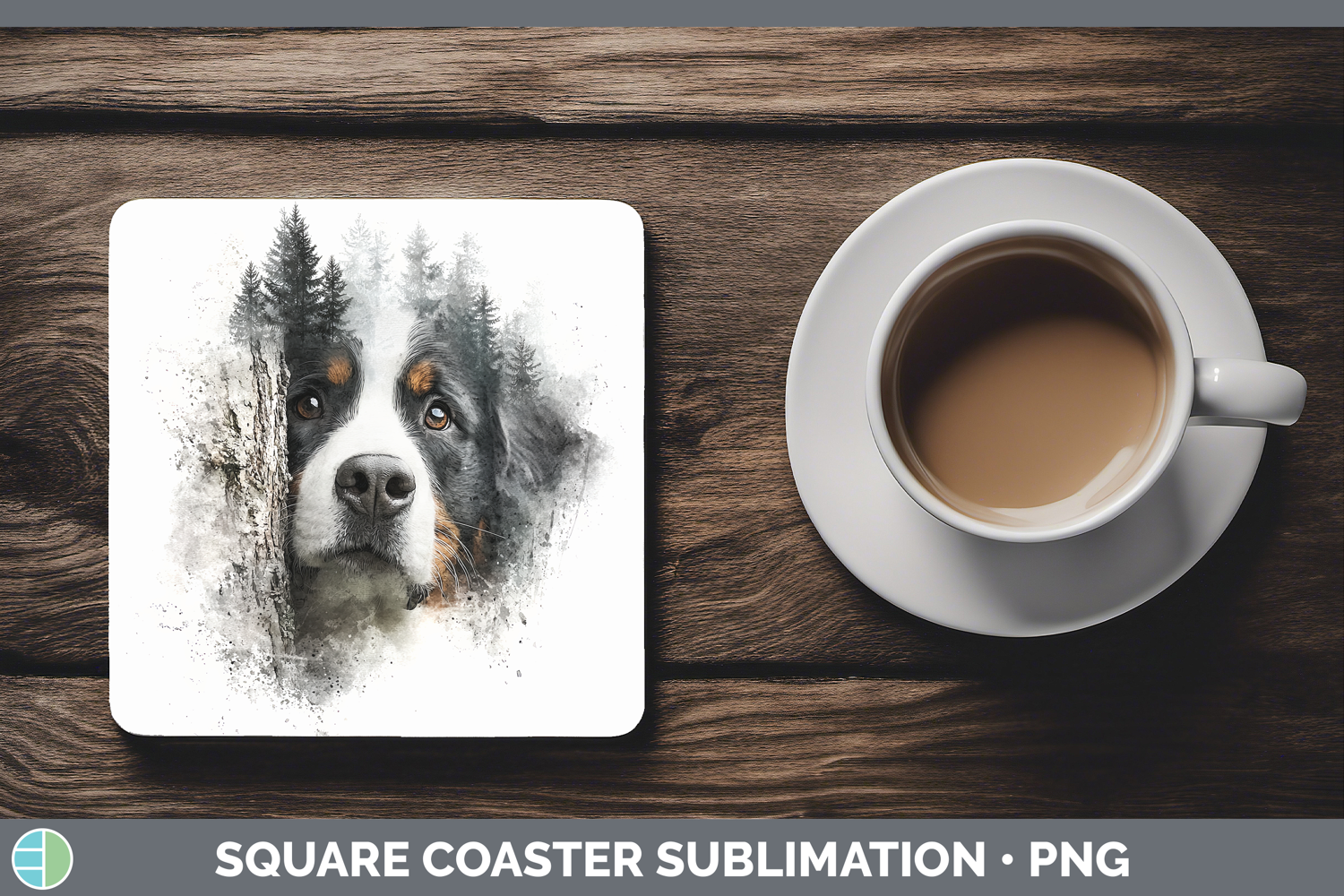 Bernese Mountain Dog Dogs 03 Tree Peek Square Coaster Sublim