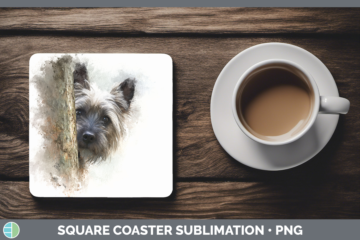 Cairn Terrier Dogs 03 Tree Peek Square Coaster Sublimation D
