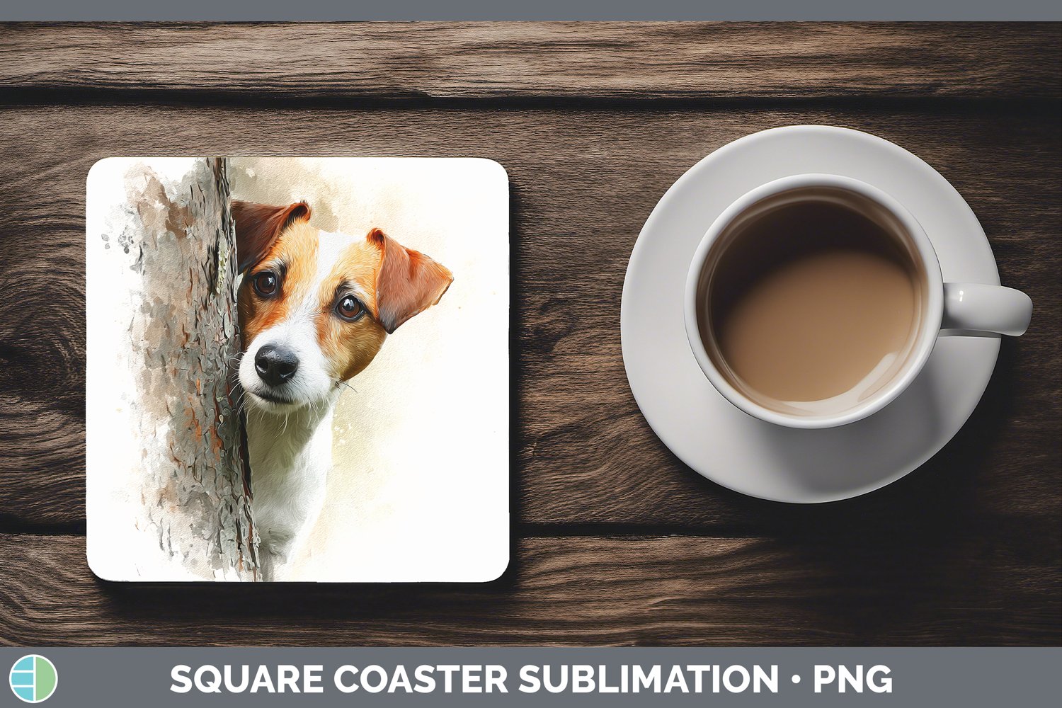 Jack Russell Terrier Dogs 03 Tree Peek Square Coaster Sublim