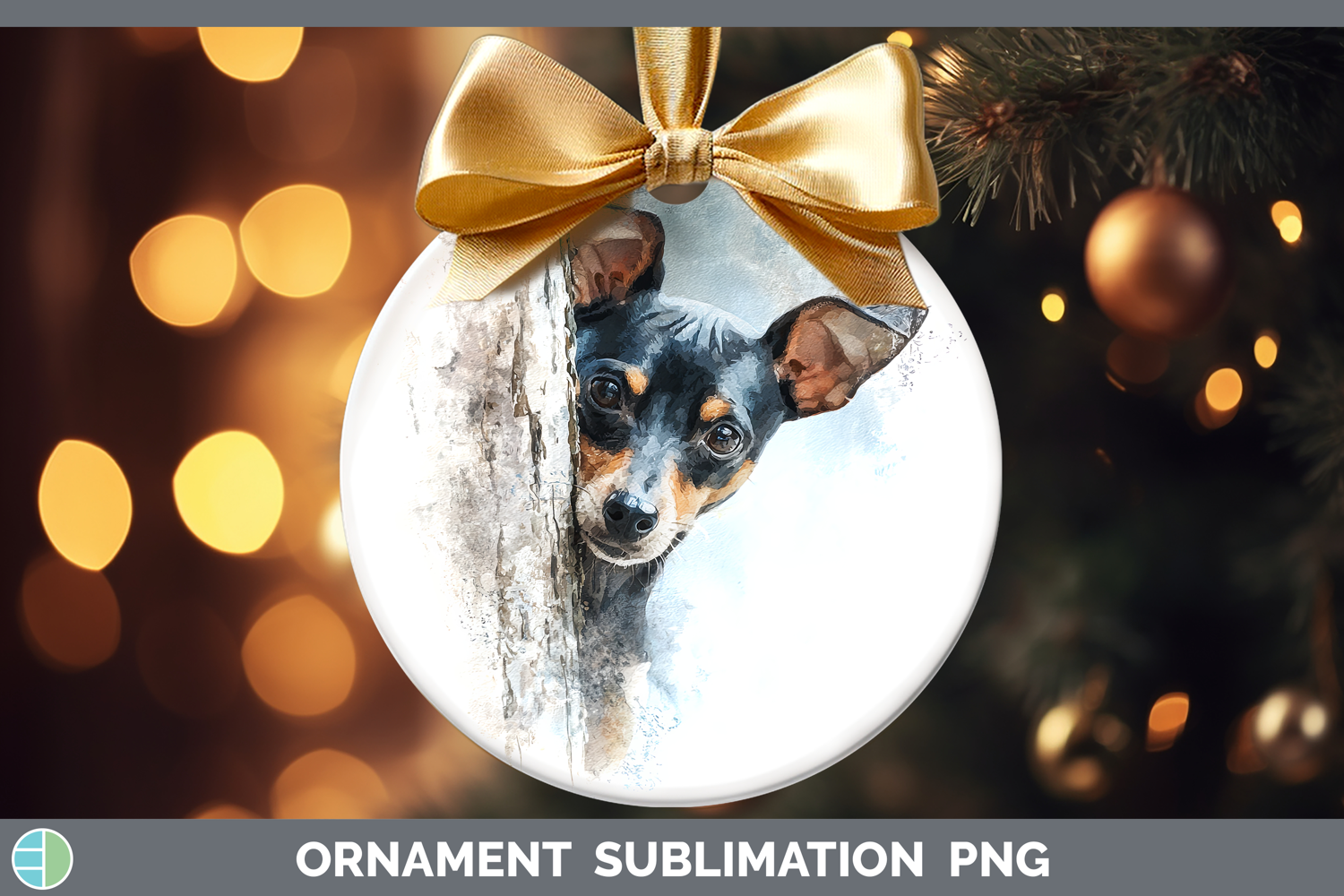 Miniature Pinscher Dogs 03 Tree Peek Ornament Sublimation De