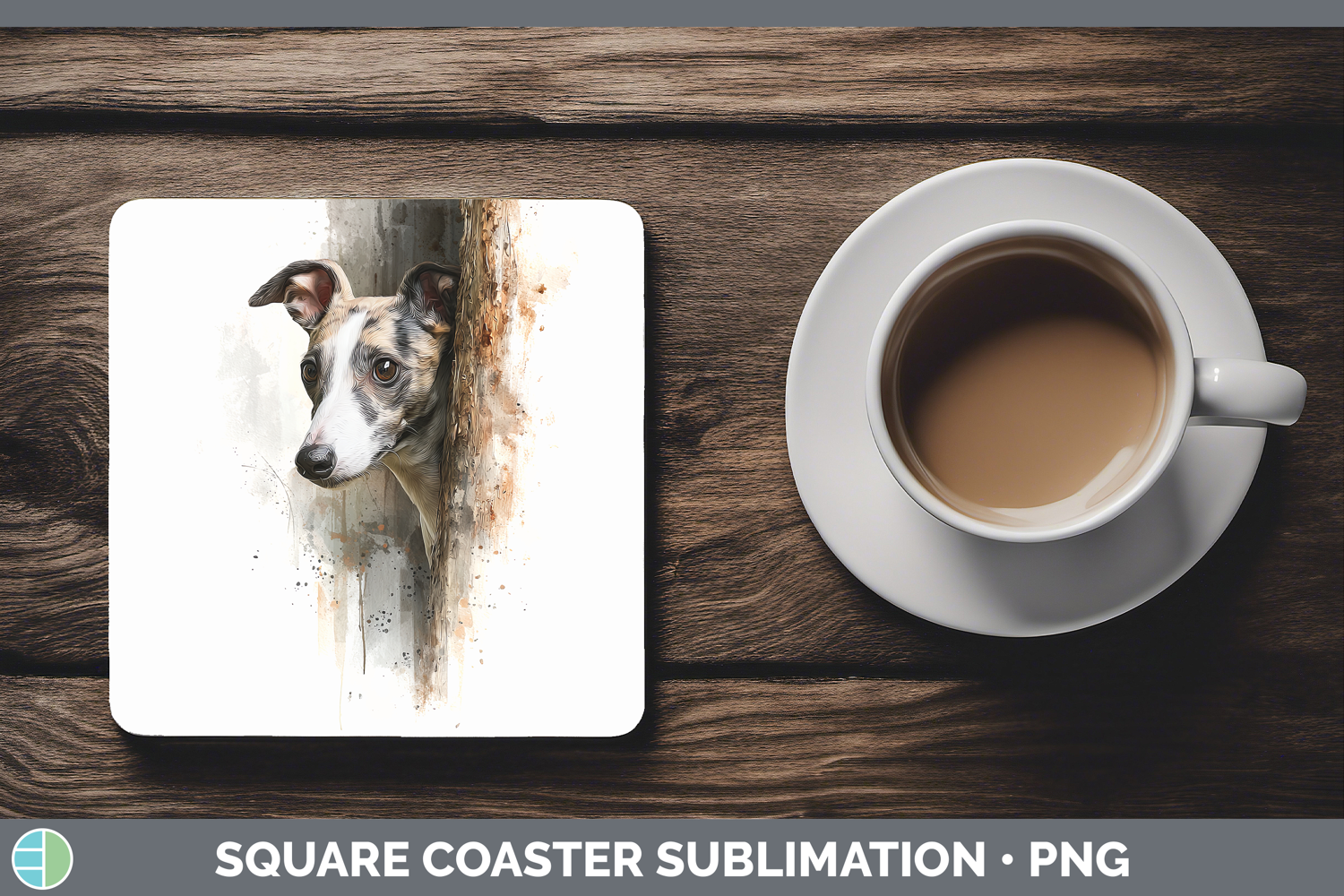 Whippet Dogs 03 Tree Peek Square Coaster Sublimation Design