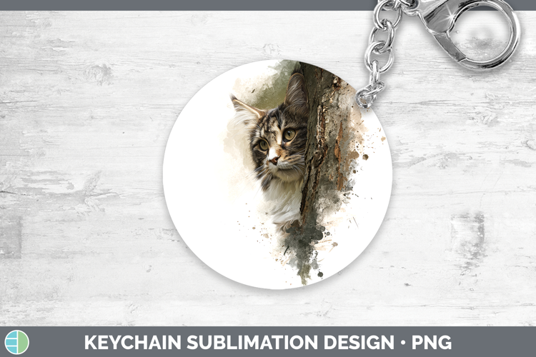 Maine Coon Cats Tree Peek Keychain Sublimation Design
