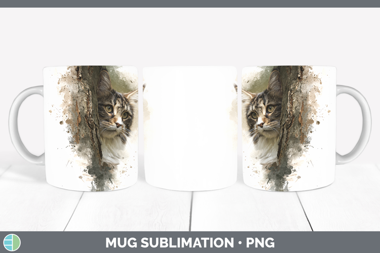 Maine Coon Cats Tree Peek Mug Wrap Sublimation Design