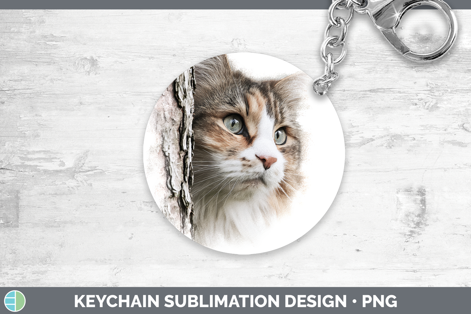 Norwegian Forest Cats Tree Peek Keychain Sublimation Design
