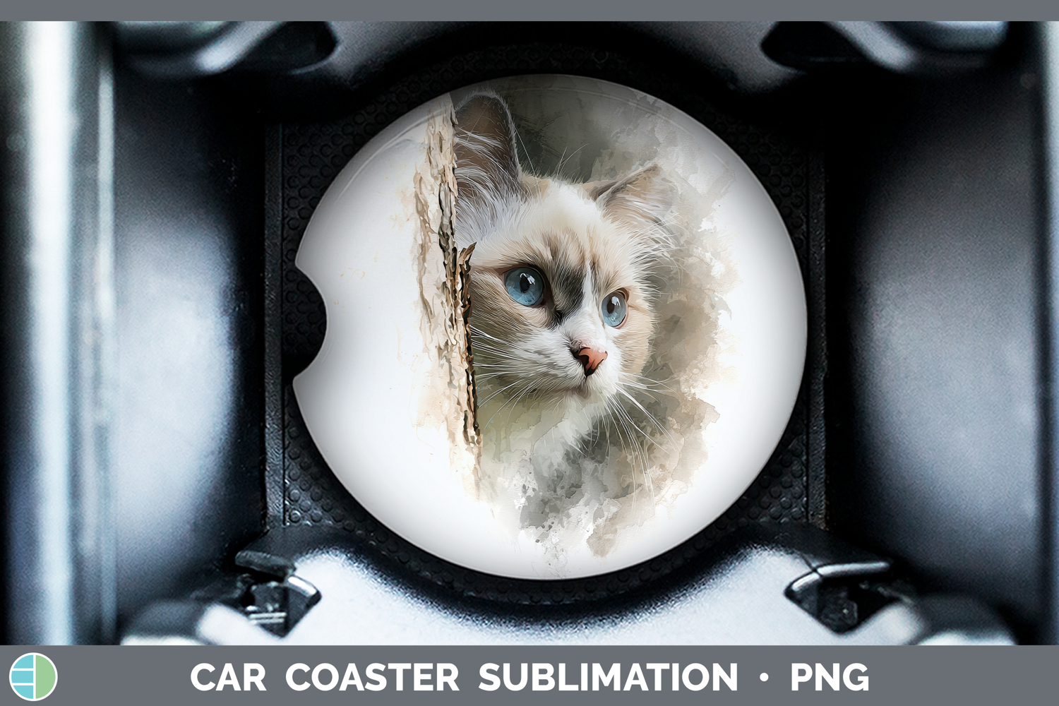 Ragdoll Cats Tree Peek Car Coaster Sublimation Design