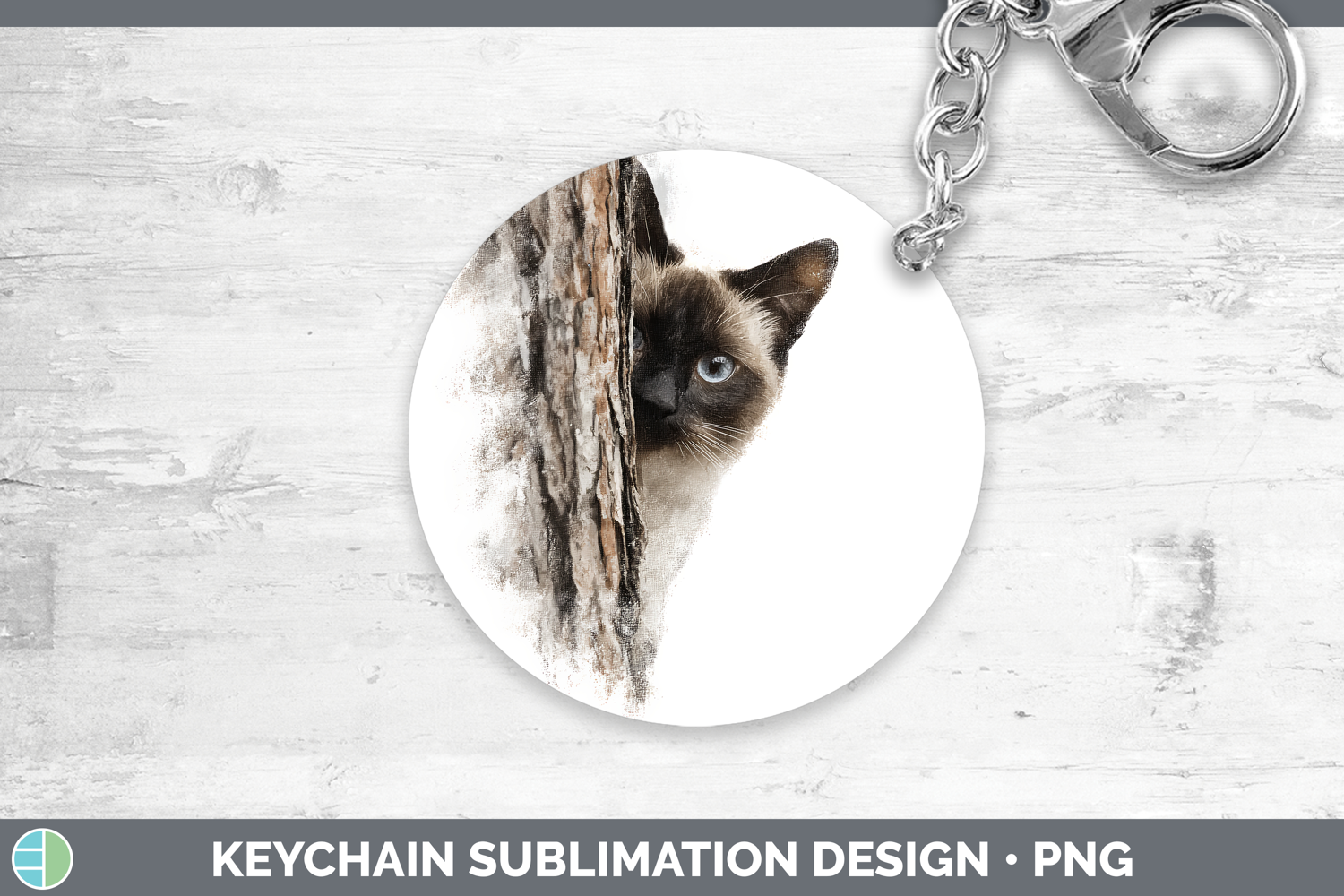 Siamese Cats Tree Peek Keychain Sublimation Design