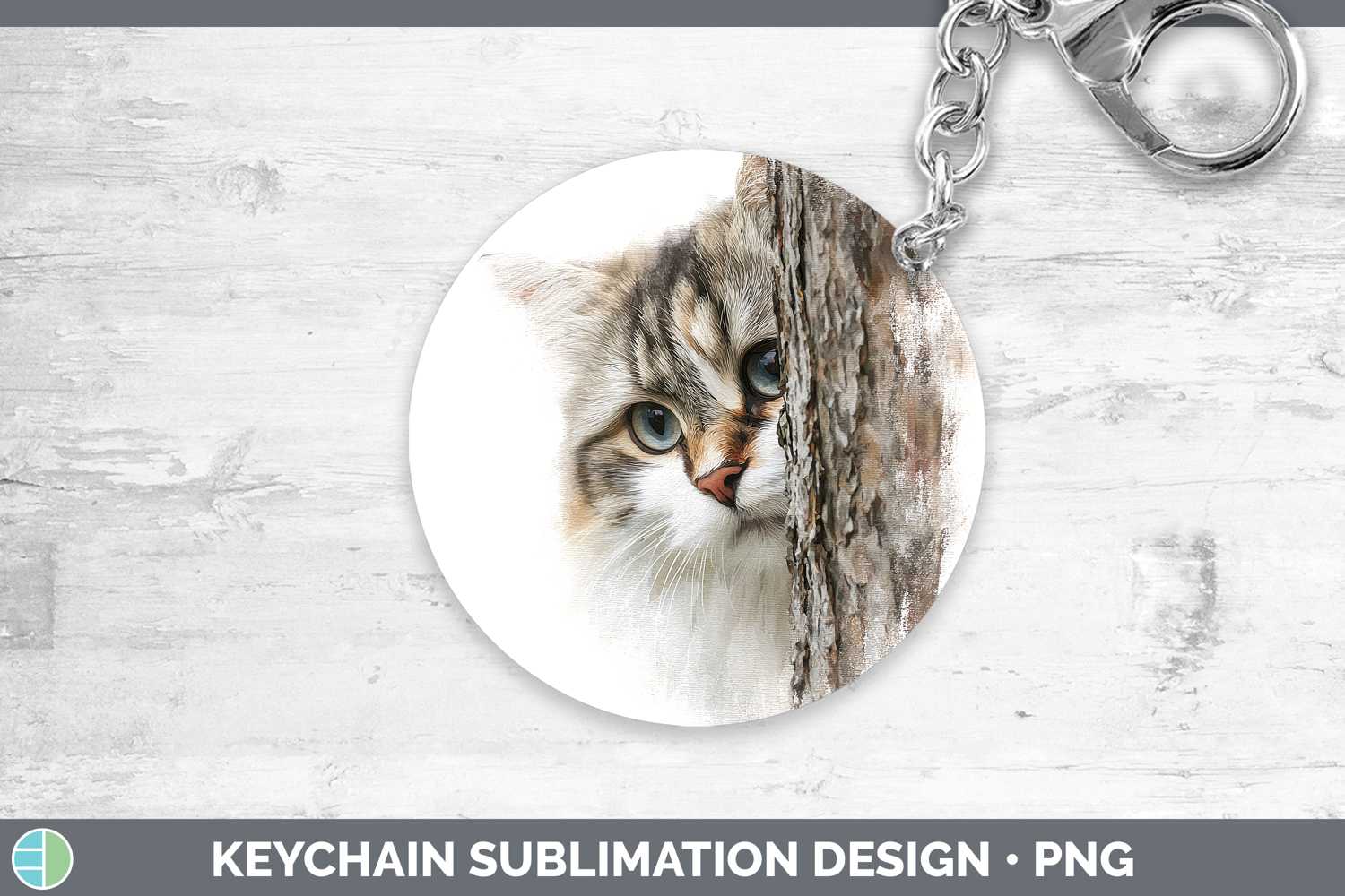 Siberian Cats Tree Peek Keychain Sublimation Design