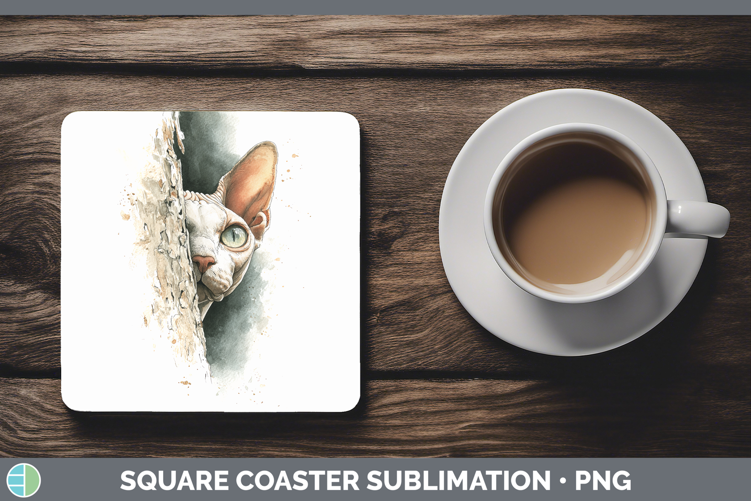 Sphynx Cats Tree Peek Square Coaster Sublimation Design