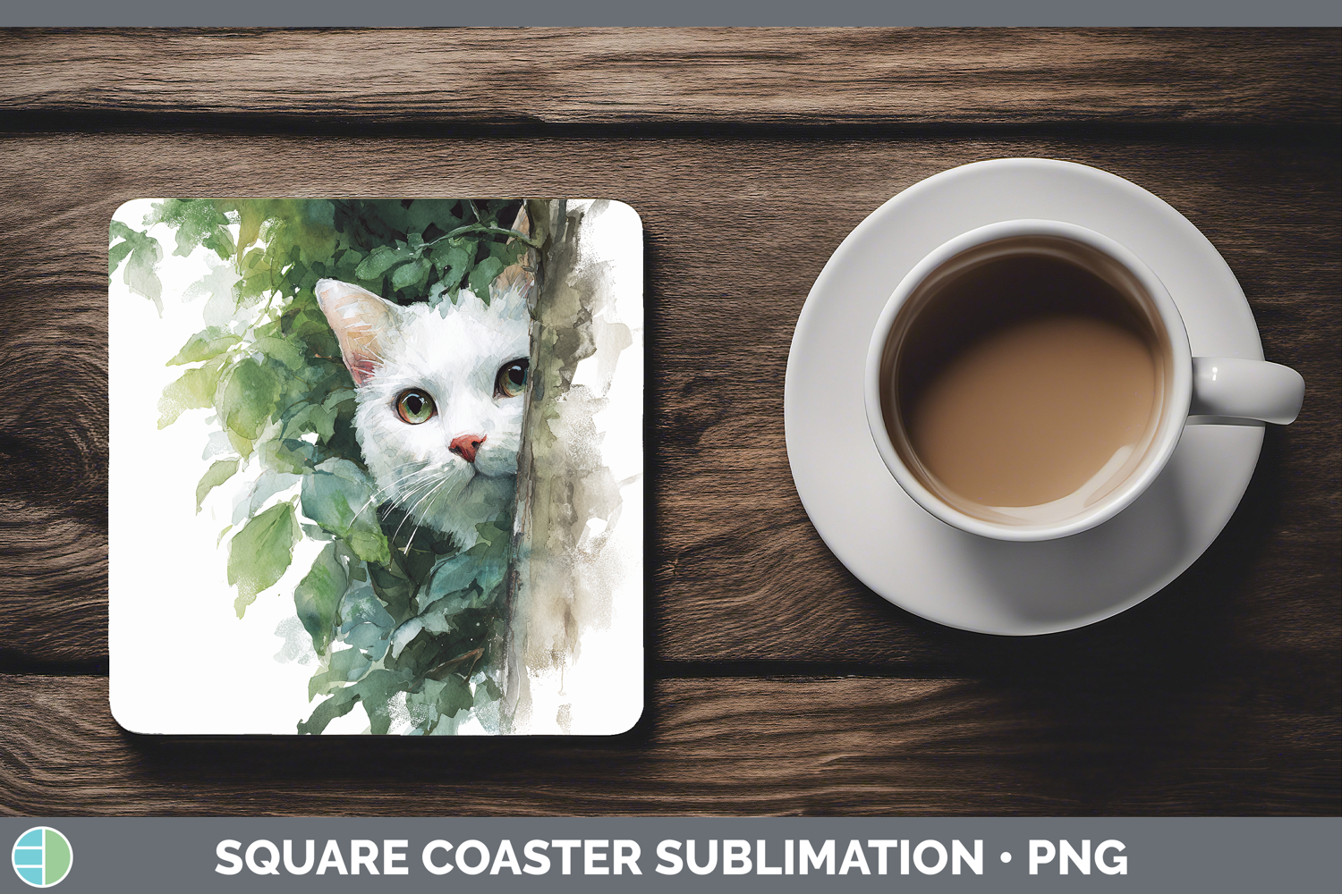 White Cats Tree Peek Square Coaster Sublimation Design