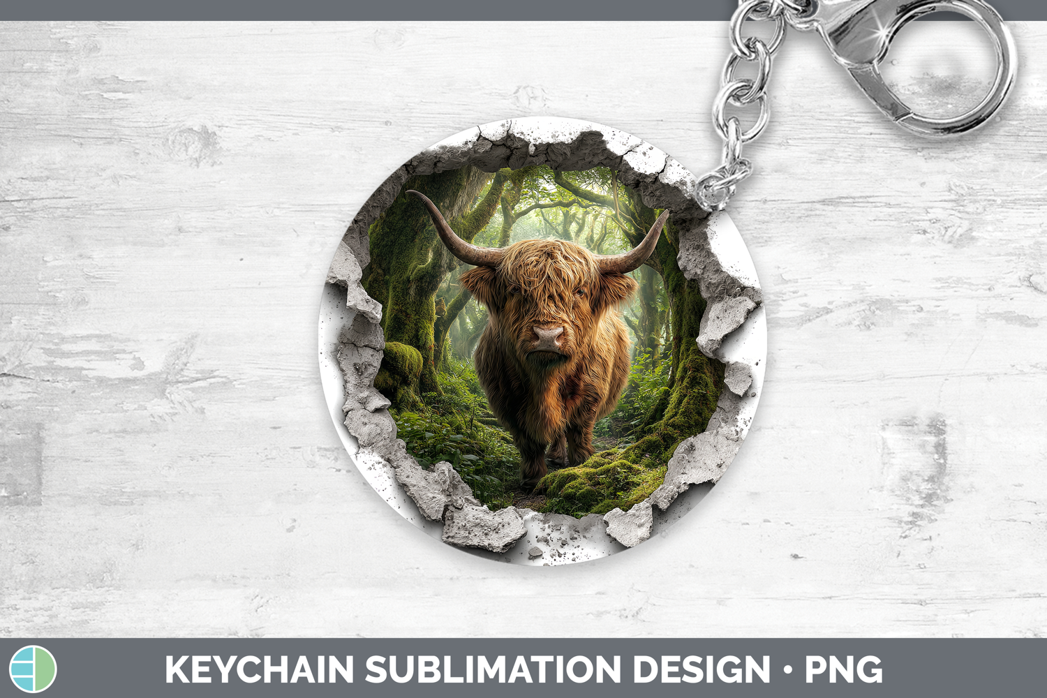 Highland Cow Animals 3D Hole Keychain Sublimation Design