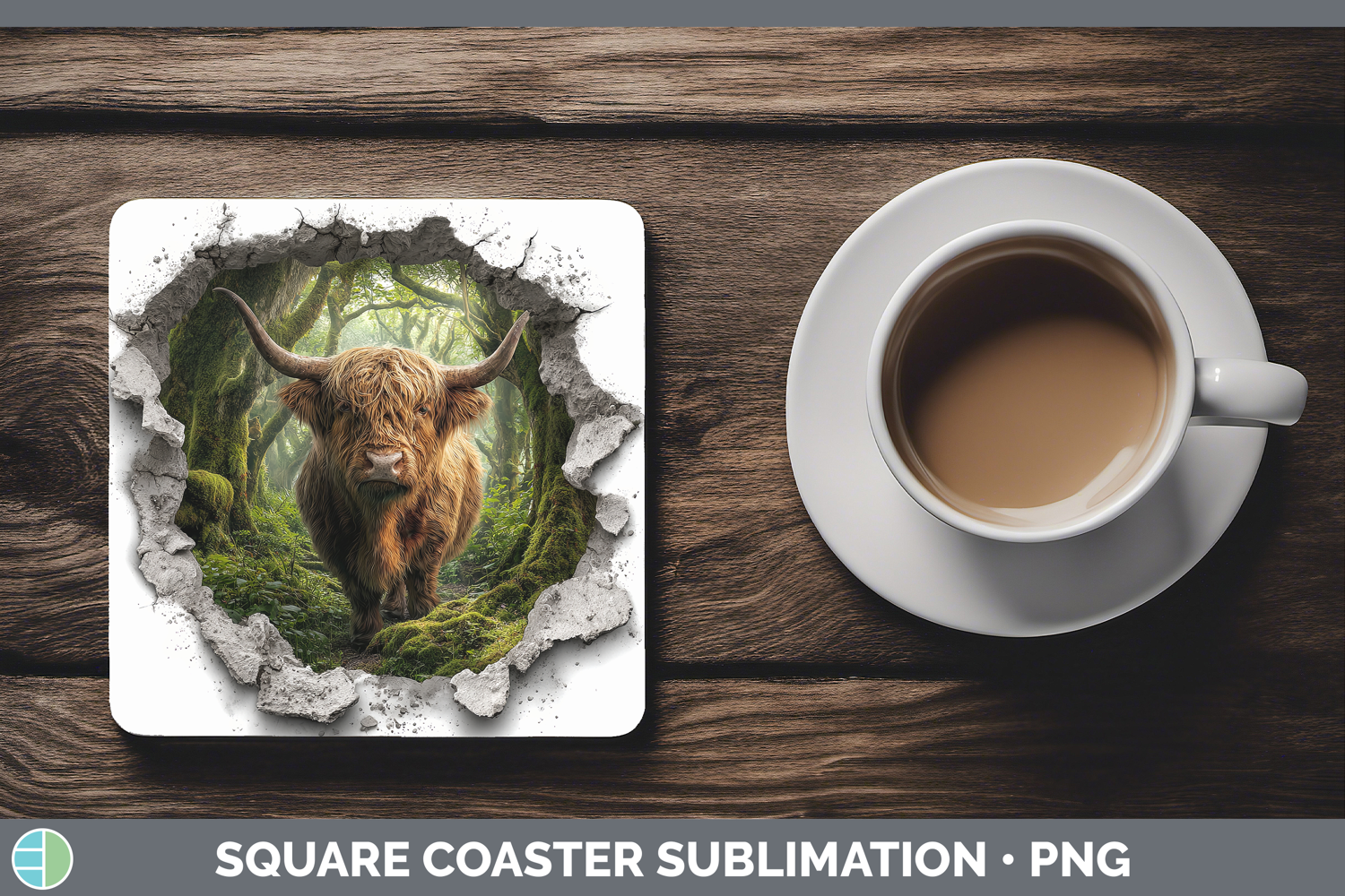 Highland Cow Animals 3D Hole Square Coaster Sublimation Desi