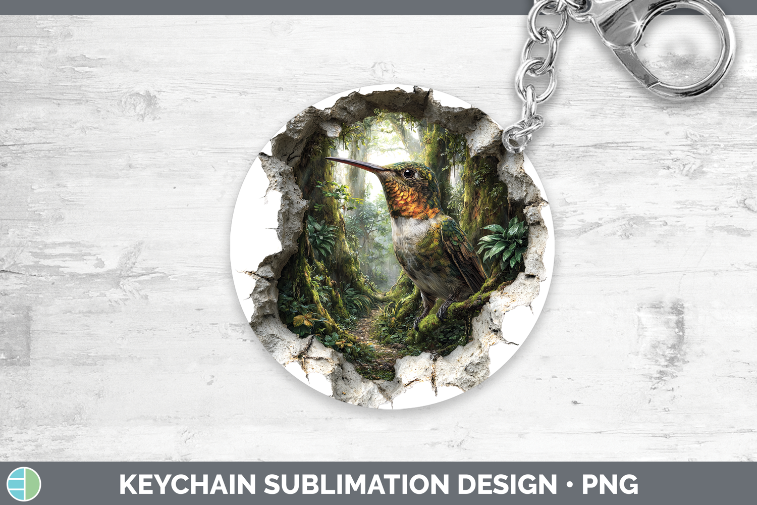 Hummingbird Animals 3D Hole Keychain Sublimation Design