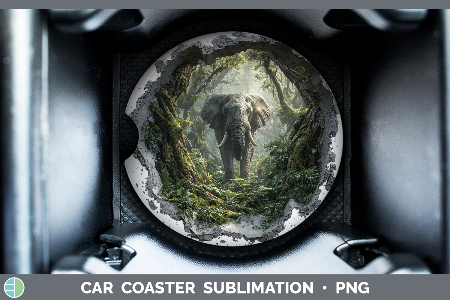 Elephant Animals 3D Hole Car Coaster Sublimation Design