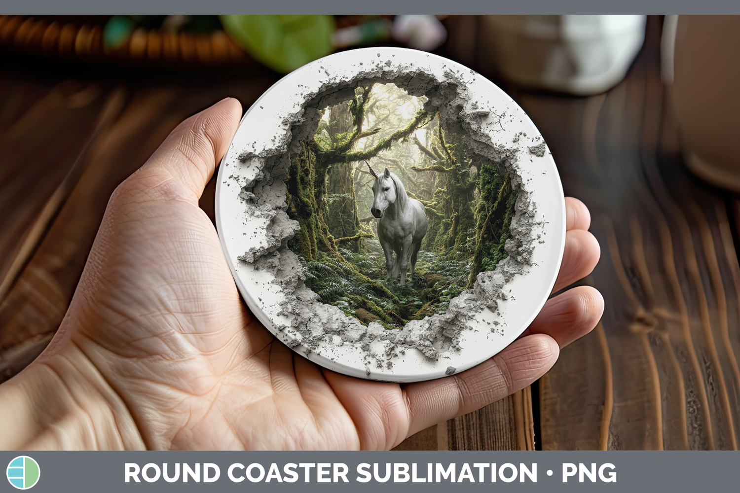 Unicorn Animals 3D Hole Round Coaster Sublimation Design